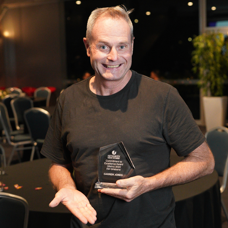 Darren Jones from Integrity New Homes Brisbane earned the Commitment to Excellence Award for Metro areas. This award celebrates franchisees who go above and beyond in their daily operations to uphold Integrity New Homes’ high standards. Darren’s keen attention to detail, dedication to client satisfaction, and commitment to quality make him a well-deserving recipient. He continually raises the bar for quality in the Brisbane metro area, setting an outstanding example for fellow franchisees.