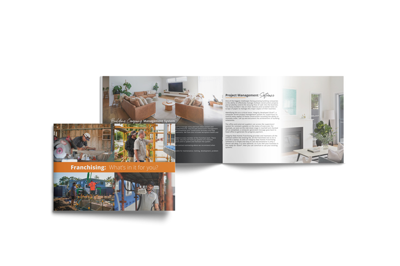 The extensive resources of Integrity New Homes marketing are made available to every Franchisee. This includes: press and electronic advertisements; web site hosting; brochures; signage (including site safety signs); regular electronic newsletters; social media; professionally photographed display homes and high quality artist’s impressions. The company has a full-time graphic designer on staff.